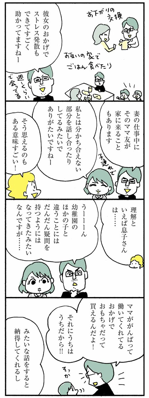 ライフ #ほしいのは「つかれない家族」 前の記事 次の記事 「仕事の成功は夫のおかげ」と語る妻の"本心" 「主夫」と暮らし気づいた世間との大きなズレ 3分で読める 公開日時:2019/04/12 05:00 ハラユキ イラストレーター、コミックエッセイスト フォロー 1/9 PAGES 2/9 PAGES 3/9 PAGES 妻の仕事中に家に遊びに来るママ友 次ページが続きます:【息子とは友だちみたいな関係の宗助さん】 4/9 PAGES 5/9 PAGES 6/9 PAGES 7/9 PAGES 8/9 PAGES 9/9 PAGES