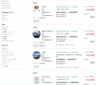関東と関西の移動は3000~5000円程度が相場となっているようだ。もちろん自家用車の利用なので、待ち合わせ場所・乗る人との相性その他もろもろ公共交通機関と同じというわけにはいかないが、選択肢としては面白いのではないだろうか。