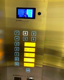 顔認証を前提としたチェックインが済んでエレベーターホールに向かい、エレベーターに乗り込みます。ここからすでに顔認証を前提とした世界が待ち構えています。エレベーターに乗り込み、自分の部屋がある階に行くにも顔認証が必要。顔認証が済んでいない人はNGです。
