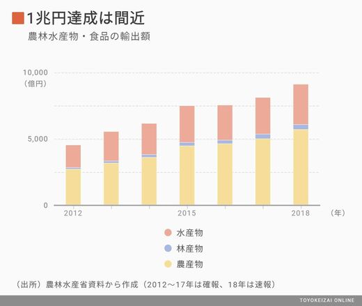 農林水産物・食品の輸出額1兆円目標を達成へ――。