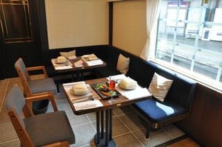 車内のデザインは、まさに「家」の雰囲気だ。窓は洋風建築のような格子状で、郊外の駅に止まっているときの車内は、列車内というよりはこぢんまりとしたレストランの店内といった風情。天井には福岡県八女市の名産品である竹細工をあしらい、いすなどは家具生産高日本一を誇る同県大川市産の「大川家具」を使うなど、列車名である「筑後」(福岡県南部)の地域性を強く意識している。
