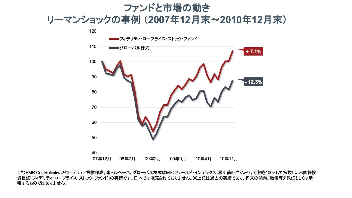 ※2 「フィデリティ・世界割安成長株投信 Aコース(為替ヘッジあり)、Bコース(為替ヘッジなし)」。当該ファンドの投資対象である「フィデリティ・世界割安成長株・マザーファンド」は米国籍投資信託Fidelity® Low-Priced Stock Fund(フィデリティ・ロープライス・ストック・ファンド)と同様の運用担当者、投資哲学、運用戦略に基づき運用されています。