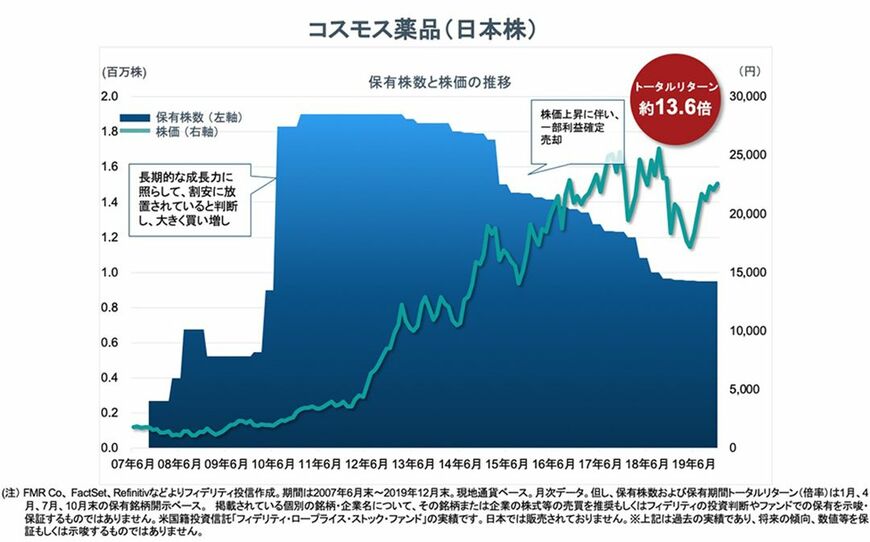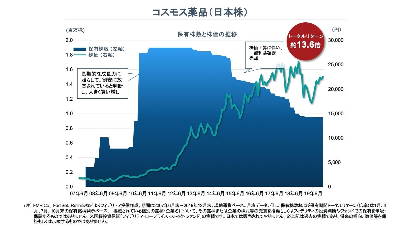 ティリングハスト氏はコスモス薬品以外にも、日本企業の中小型株に数多く投資を行い、高い成果を上げている。同氏がポートフォリオ・マネージャーを務める「フィデリティ・ロープライス・ストック・ファンド」(Low Priced-Stock Fund:以下LPSF)」は1989年以来30年以上もの間、ベンチマークを大幅に上回るパフォーマンスを続け、この間のリターンは約43倍※3に達した。