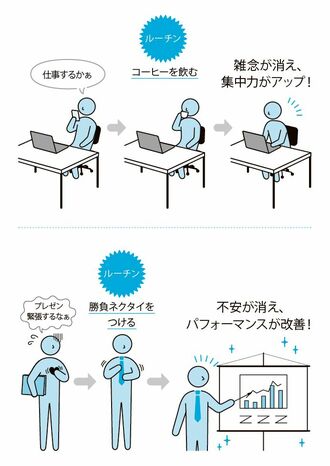 ルーチンはちょっとした動作で十分です。図の例を参考に、ぜひ自分に合ったルーチンを見つけてみてください。