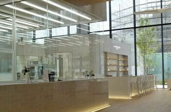 施設内は地上16階・地下1階建て。3階以上がオフィスフロアになっている一方で、1階と2階は一般人にも開放。1階と2階を合わせて「S/PARK(エスパーク)」と名付け、4月13日からカフェやスタジオなどを併設する複合施設として運営を始めている。