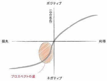 利得とポジティブな反応のほうは規則的な曲線を描いていますが、損失とネガティブな反応のほうは、損失側に入ってすぐのところでグラフが急下降しています。いわば「プロスペクトの崖」です。