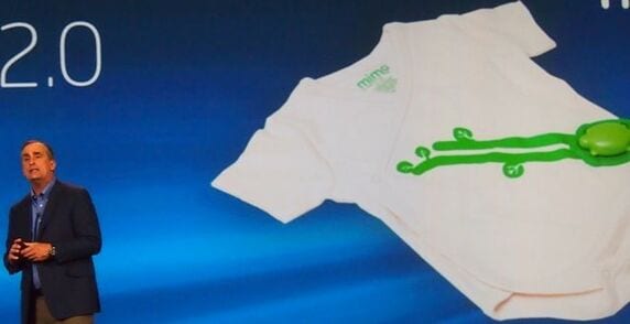 プレゼンの中で、クルザニッチ氏は、エジソンを埋め込んだデバイスが装着されたベビー服を見せた。乳児の体温を計測し、結果を親のスマートなマグカップに表示。こうすればコーヒーを飲みながらでも、赤ちゃんの健康状態が分かるというわけだ。インテルは「Make it Wearable Challenge」というウェアラブル開発のコンテストを行い、130万ドルを賞金としてウェアラブルの起業を後援するという。