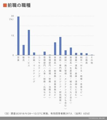 第二新卒の前職は営業職とサービス職が半数