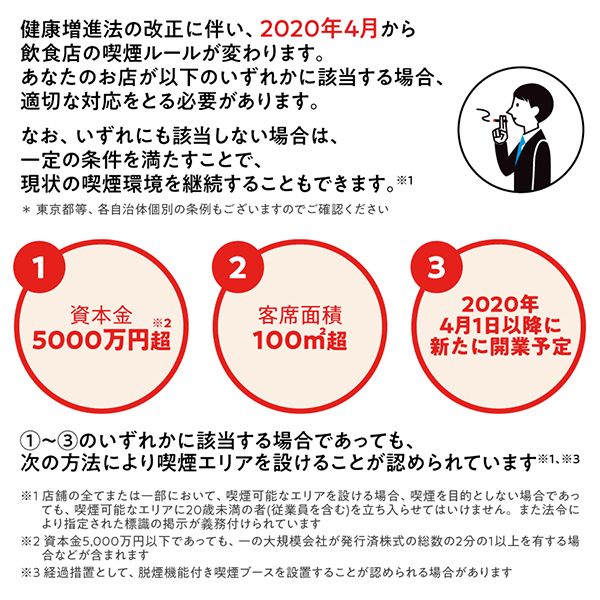 飲食店の新しい喫煙ルールに対応し、たばこを吸う人も吸わない人も、ともに快適に過ごせる空間を提供するための情報収集は、選ばれる飲食店になるために大きな意味を持つだろう。