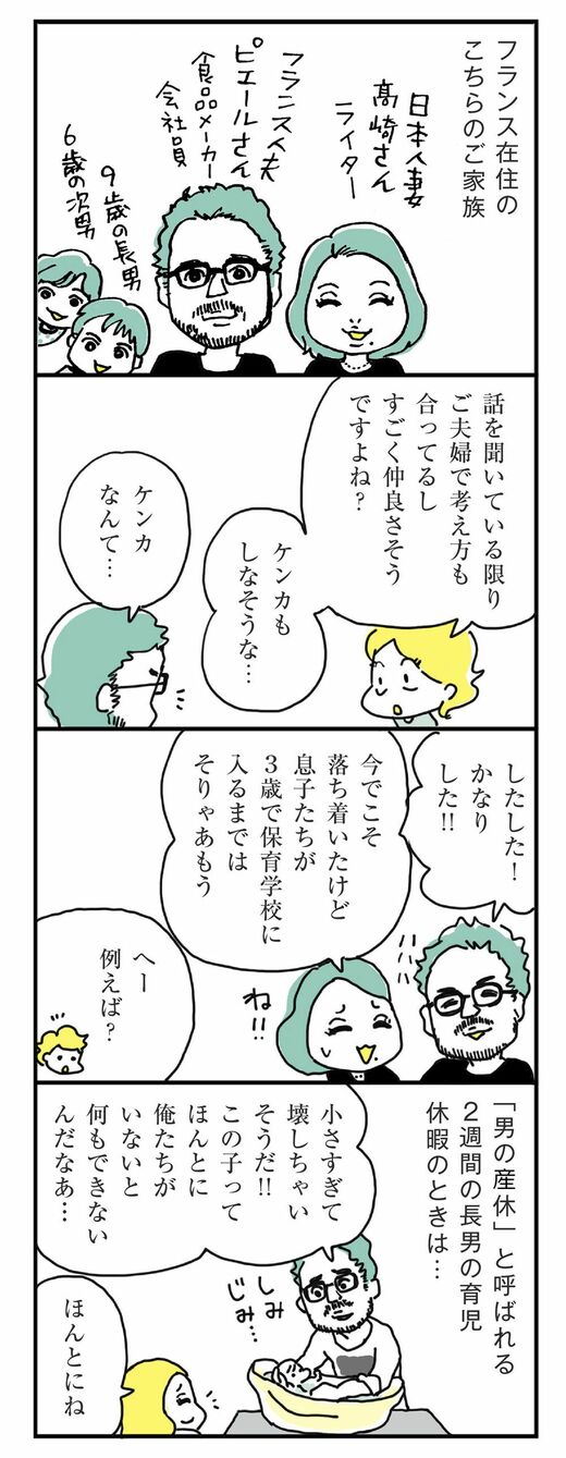 数回に分けて、フランス・パリ在住のある夫婦の家事育児分担を紹介していますが、第1回は、フランスの妊娠出産事情について(記事はこちら)、第2回はこの夫婦の家事育児分担詳細と夜の寝室事情について(記事はこちら)、第3回はフランスの保育園事情について(記事はこちら)、そして今回は「夫婦のピンチを乗り越える方法」について紹介します。