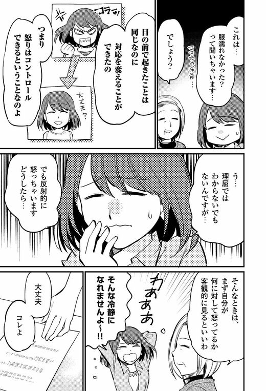 「怒りは誰でもあり、必要な感情だが、怒らされているのではなく、自分で怒るかどうか決めているのだ」と話す幸子さん。あくまでも自分は子どもにイライラさせられているのだと納得できないでいるみちるさんに、幸子さんはある場面を想像させました。