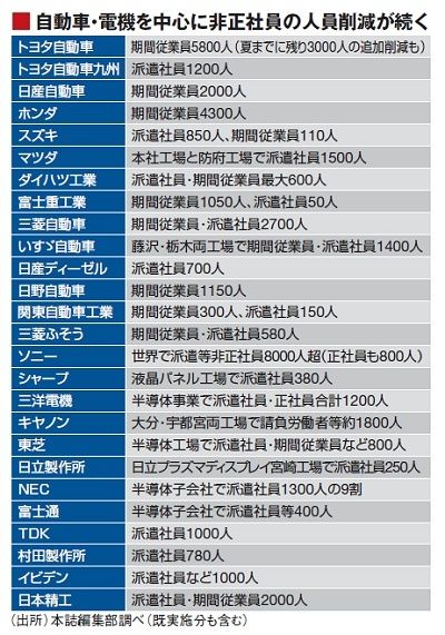 製造業で働く派遣・請負労働者40万人が3月までに失業する--。1月27日の自民党・労働者派遣問題研究会で、製造派遣・請負の業界2団体は衝撃的な見通しを明らかにした。