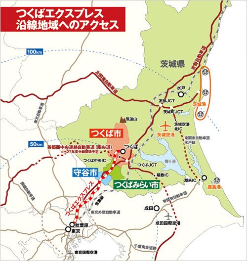現在、建設が進む圏央道は、2015年度にはほぼ全線が開通する見通しである。そうなれば神奈川県から千葉県までが一本で結ばれ、つくばエリアからは東北自動車道や関越自動車道へのアクセスも向上し、交通網は一段と充実する。そこに着目してこのエリアに物流拠点を設ける動きも最近は顕在化している。事実、種苗大手のタキイ種苗は昨年の5月、研究学園駅近くに約7000平方メートルの土地を購入し、関東支店(事務所・物流拠点)を建設すると発表した。常磐自動車道と圏央道が交差するつくばエリアは、国内有数の高速道路網の結節ポイントとして今や全国的にも大きな期待と注目を集めている。