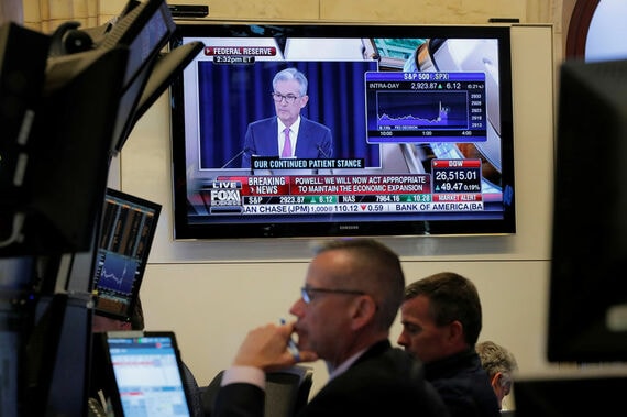 FRBはフェデラルファンド(FF)金利の誘導目標を2.25─2.50%に据え置くことを決定すると同時に、不確実性の増大などに対応するために年内に最大0.5%ポイントの利下げを実施する可能性も示唆。FOMC声明で「景気拡大を維持するために適切に行動する」と表明し、これまでの声明にあった金利調整に当たり「忍耐強く」対処するとの文言は削除した。