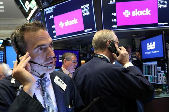 職場向けメッセージアプリを手掛ける米スラック・テクノロジーズはこの日、ニューヨーク証券取引所に上場。初値は38.50ドルで、直接上場の参照価格(26ドル)を48%上回った。結局、48.5%高で引けた。