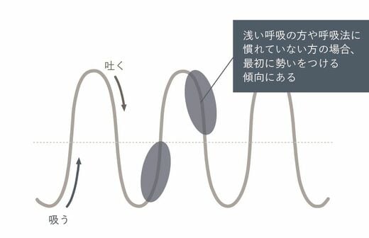 下図を見てください。呼吸というのは波です。図のように、「吸う」と「吐く」が繰り返されていくのをイメージしてください。