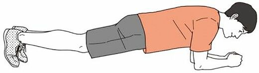 *お尻が突き出たり、腰が反らないよう、真っすぐに体を保つ。最初は10秒くらいから始めて、徐々に時間を延ばし、最終的には1分間続けられるまで頑張る。
