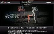 リリースには、新開発EXILIMエンジン4.0の高速画像処理により、撮影した被写体を切り抜き、背景となる別の静止画に合成できる「ダイナミックフォト」を搭載。しかも、動く被写体を切り抜いて合成できるので、写真の中で被写体だけが動きます、とある。その具体的な用途を集めたウェブサイトには、大リーグの打席でバットを振る少年の姿や、富士山から滑り降りる子供の姿など、楽しげなデモ画面が揃っている。