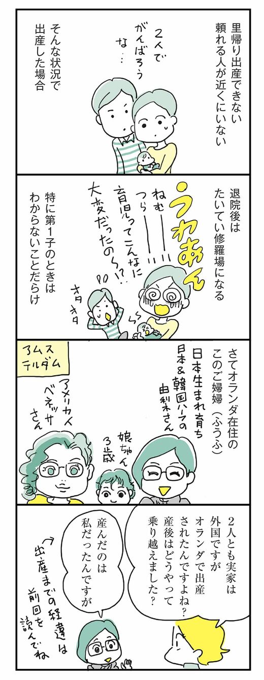 前回から、オランダ・アムステルダムに住むある家族の家事育児分担を紹介しています。前回はレズビアンカップルであるふたりが婦婦(ふうふ)になって妊娠するまでの経緯(記事はこちら)、今回はオランダの出産事情を紹介します。