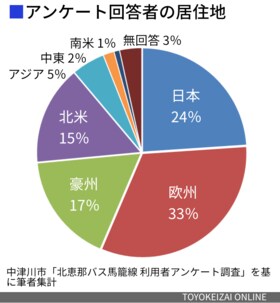 その結果は興味深いものだ。まず、驚くのは馬籠線利用者における外国人の割合だ。