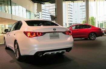 これまでのスカイラインよりも上級移行したためにインフィニティのエンブレムを掲げたというのが日産側の説明で、インフィニティ・ブランドを日本でも展開するための布石とも取れたが、昔からのスカイライン・ファンにはネガに映った。