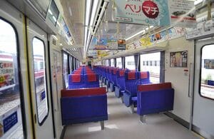 どこが特別なのか。それは、京急の一般的な電車では、ドアが片側に3枚あって車内にはレール方向に長いロングシートを設けているのに対して“特別な種類の列車用電車”のドアの数は2枚で、シートは進行方向を向いて座るクロスシートを設けている。ここが最大の違いである。