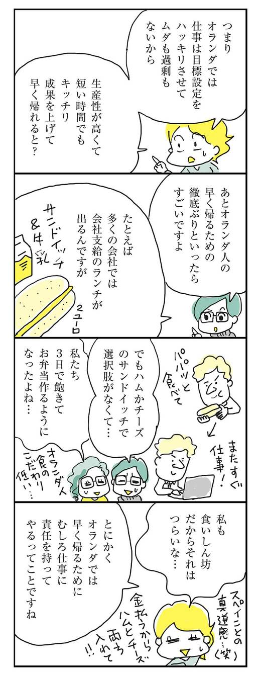 ライフ #ほしいのは「つかれない家族」 前の記事 次の記事 「パート勤務で管理職」がオランダで可能なワケ 「時短勤務が多いと職場が回らない」は本当か 4分で読める 公開日時:2019/08/16 05:40 ハラユキ イラストレーター、コミックエッセイスト フォロー 1/9 PAGES 2/9 PAGES 3/9 PAGES 4/9 PAGES 5/9 PAGES 6/9 PAGES 7/9 PAGES 早く帰るためには食も生産性優先 次ページが続きます:【日本は世界でも有名な長時間労働国】 8/9 PAGES 9/9 PAGES
