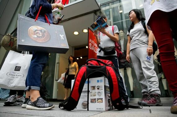 8月21日、日本政府観光局が発表した今年7月の訪日外国人客数は、前年比5.6%増の299万1200人だった。写真は銀座で2016年10月撮影(2018年 ロイター/Toru Hanai)