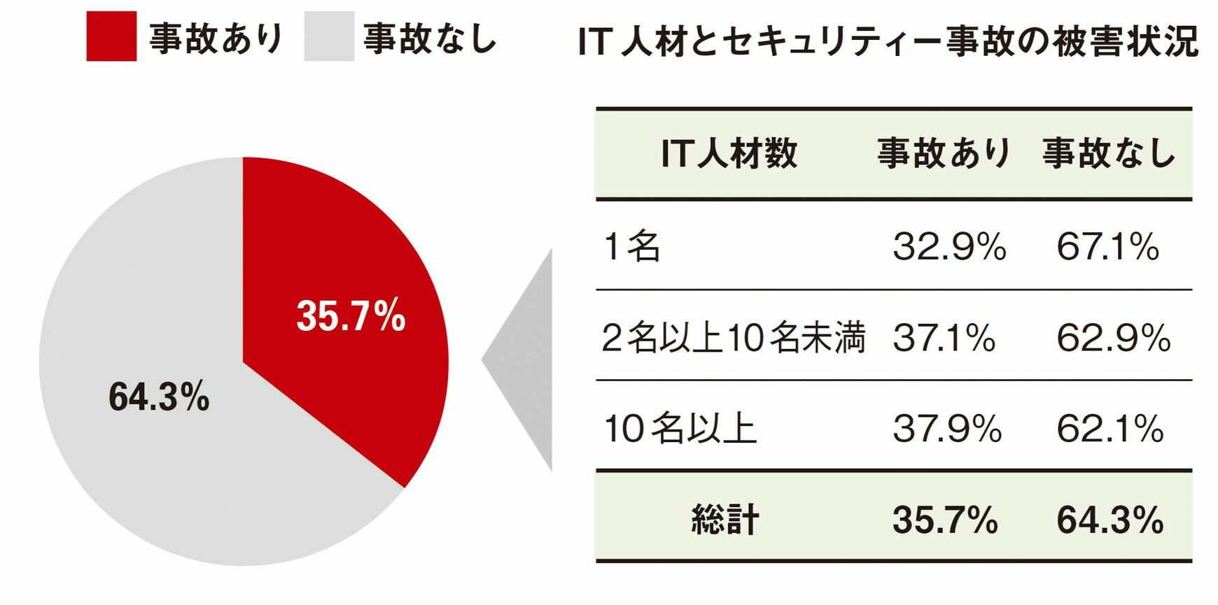 中堅企業が直近3年間でセキュリティー事故の被害に遭った割合
