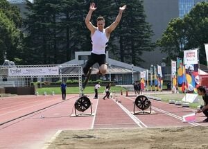 デモンストレーションとして大型扇風機で追い風を受けて世界記録に挑戦し、見事8メートル50を跳び(非公認)、盛り上げに一役買った。