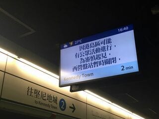 現地報道によると、この日のうちにMTRの32駅でチケット販売機の液晶画面を割る、改札機に塗料をかける、ホームドアのガラスを割るなど、何らかの破壊行為があったという。さらには各駅にある監視用カメラ260基が壊された。結局、同日はMTRの地下鉄全線が終電を待たずに運行打ち切りとなった。