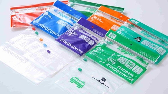 それまでも食品関連のグッズを数々手がけてきた紀伊國屋は、すぐに商品化を検討。2016年にはL、M、Sの3種類のジッパーバッグを発売した。すると、初回分の2万個はあっという間に完売。生産が追いつかず、長く欠品する状態が続いてしまった。その後、ニーズに応えてSSサイズとLLサイズが加わり、2018年にはSuicaのペンギン、2019年には江ノ電デザインが登場した(江ノ電版は鎌倉店のみ販売)。