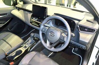 インテリアはカローラスポーツと基本的に共通で、やはり水平基調でワイド感を出したという。細かいことではあるが、スポーツではシルバーだったステッチがゴールドになるなどの違いはある。フロントシートはノーマルとスポーティの2タイプがあり、形状はスポーツのそれよりおとなしめだ。