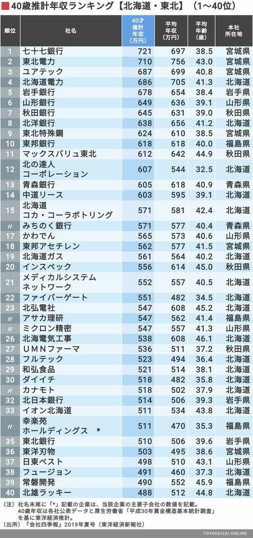政治・経済・投資 #賃金・生涯給料ランキング 前の記事 次の記事 「40歳年収」地方に本社を置く企業ランキング 800万円を超えたのは安川電機の1社のみ 3分で読める 公開日時:2019/10/08 05:00 東洋経済オンライン編集部 フォロー 1/7 PAGES 2/7 PAGES 3/7 PAGES 4/7 PAGES 5/7 PAGES 6/7 PAGES 次ページが続きます:【最後に北海道・東北78位まで】 7/7 PAGES