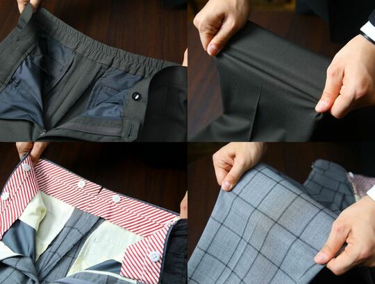 アクティブスーツの最大の魅力が、「快適な着心地」だ。素材にはストレッチ生地が使われることが多く、従来のスーツよりもかなり動きやすい。またパンツの後ろの腰部分はゴム製のギャザーが配されているため、座ったりしたときの窮屈感も大きく軽減されている。