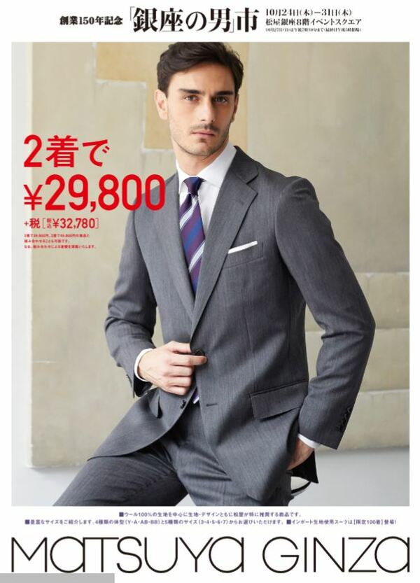 衝撃の「ウール100%スーツが2着で2万9800円~」