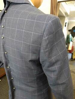 井川さんのジャケットで不要な余り部分を、針を使用して留めてみました。すると不要な余りがかなり見受けられました。