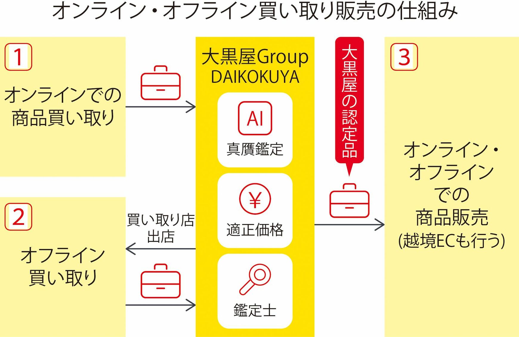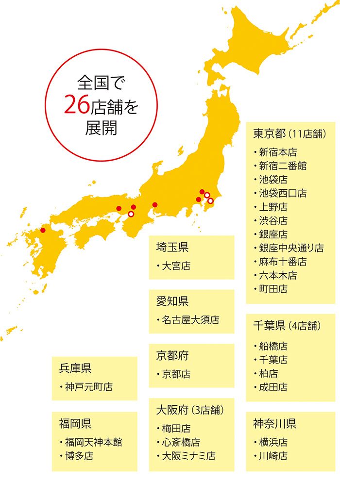 しかし、同社はそうしたアナログ的な強みだけに頼っているわけではない。それを補完するものとして、AIを活用した真贋の判定も行っている。さらに日々容量を増していくデータベースも構築している。これはいわばアナログとデジタルのシナジーによる強さだ。その強みを生かし、オンライン上で買い取り・販売を行うECも展開している。また、新宿本店、銀座店、梅田店などのターミナルに立地する大型店をはじめ、全店舗でブランド中古品の買い取り・販売も行っている。いわばオフラインの買い取り・販売だ。全国26店舗という多店舗展開に加えて、多様なチャネル展開をすることにより、高価買い取りや需要に応じた適正な商品配置が可能になるというわけだ。