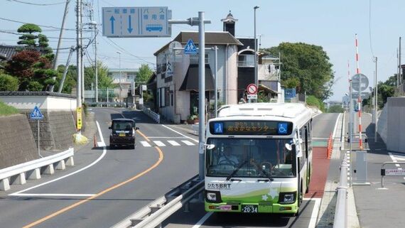 ひたちBRTは、日立電鉄の廃線跡の一部をバス専用道に転用し、渋滞に左右されない、高い定時運行性を備えた公共交通機関として登場した。
