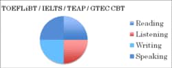 一方で、外部試験の多くはバランスの良い4技能試験です。内外のテスト作成の専門機関が競争しながら作っているため、個々の問題のレベルも非常にクオリティの高いものに仕上がっています。しかし、受験者のレベルと問題のレベルが合っていないと本来の判定能力を発揮できないという問題が生じます。