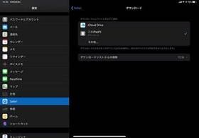 設定は、「設定」アプリにある「Safari」の項目で行う。ここを開き、「一般」のグループにある「ダウンロード」をタップする。標準では「iCloudドライブ」になっているため、これを「このiPad内」に変更すればよい。すると、iPad内に「ダウンロード」という名称のフォルダが自動で作成される。ここに、ダウンロードしたファイルが追加されていく仕組みだ。