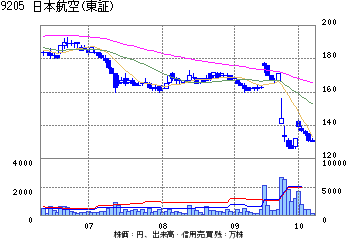 国内証券アナリストは「全日本空輸と違って簿価を下げていない。中古機を売る場合、簿価の半分でしか売れず多額の売却損が出る」と指摘。路線リストラを加速するほど機材が余り、赤字が膨らむ構図だ。今年度の最終赤字は会社計画630億円を大きく超え、債務超過に陥るとの見方もある。