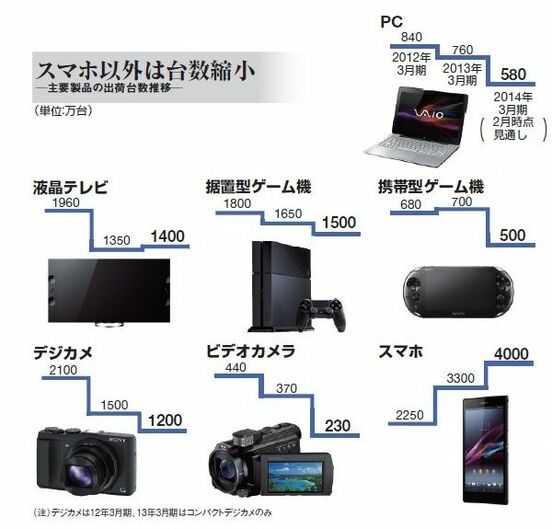 今後は、パソコン事業以外についても、大規模な希望退職の募集を行う可能性が高い。現在のソニーの不振は、エレキ部門全体の地盤沈下が背景にあるためだ。