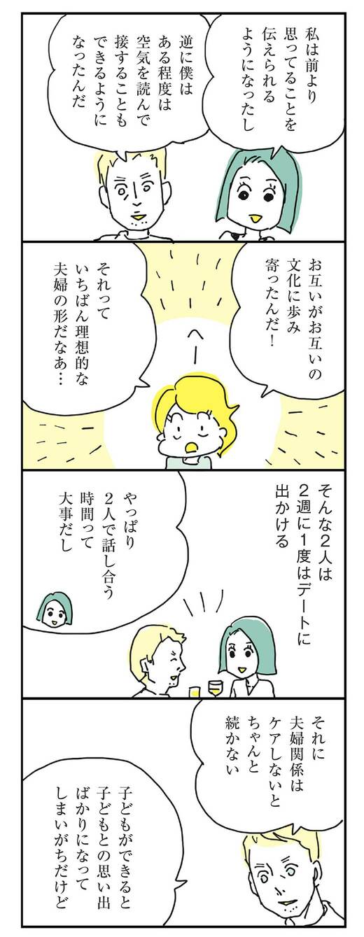 ライフ #ほしいのは「つかれない家族」 前の記事 次の記事 熱愛期を過ぎた夫婦が「仲良し」を維持するコツ 夫婦関係はケアしないとダメになる 3分で読める 公開日時:2019/10/25 05:35 ハラユキ イラストレーター、コミックエッセイスト フォロー 1/7 PAGES 2/7 PAGES 3/7 PAGES 4/7 PAGES 5/7 PAGES 夫婦関係はケアしないとちゃんと続かない 次ページが続きます:【夫婦だけの思い出も大事】 6/7 PAGES 7/7 PAGES