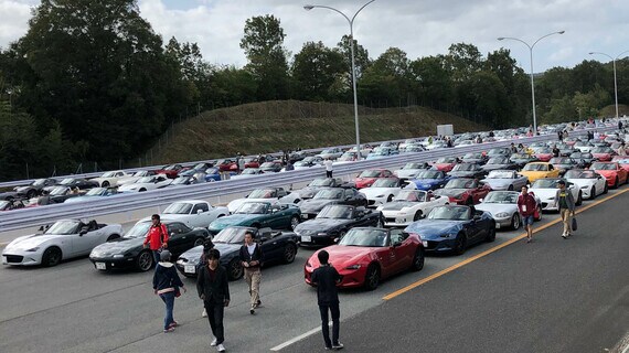 広島市中心部から北東へクルマで約1時間半、広島県三次(みよし)市内にあるマツダの三次自動車試験場に到着した。取材した10月13日、三次自動車試験場にはロードスターファンが一堂に会した「ロードスター30周年ミーティング」というイベントが盛大に開催された。