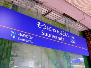 “駅名標”に記されている駅のナンバリングは本来の「SO37」でなく、そうにゃんを連想させる「SO28」とするなど芸が細かい。