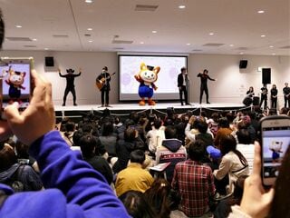 当日のそうにゃんは、大勢のファンが待ち構える中、テーマ曲「そうにゃんです!」に乗って登場した。1年の活動を振り返るステージショーのほか、グッズ販売コーナー、子どもたちが色を塗ってオリジナル缶バッジを完成させるワークショップも用意された。
