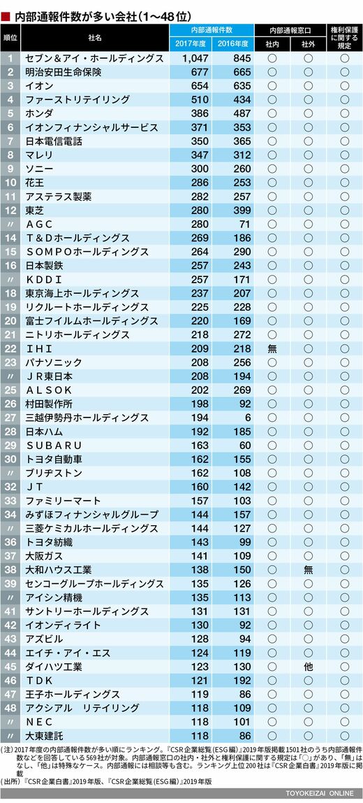 政治・経済・投資 最新!「内部通報が多い企業」ランキングTOP100 企業の不祥事を防止する上で有効な手段の1つ 10分で読める 公開日時:2019/11/15 05:10 佐々木 浩生 東洋経済『CSR企業総覧』編集部 フォロー 1/6 PAGES 2/6 PAGES 次ページが続きます:【続いて97位までのランキング】 3/6 PAGES 4/6 PAGES 5/6 PAGES 6/6 PAGES