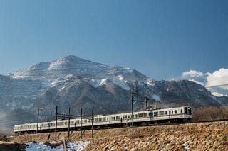 武甲山と言えば石灰石の山として有名。かくいう西武秩父線も武甲山の石灰石を原料とするセメント輸送が建設のひとつの目的であった。横瀬車両基地に静態保存されている機関車たちもセメント輸送で活躍した面々だ。