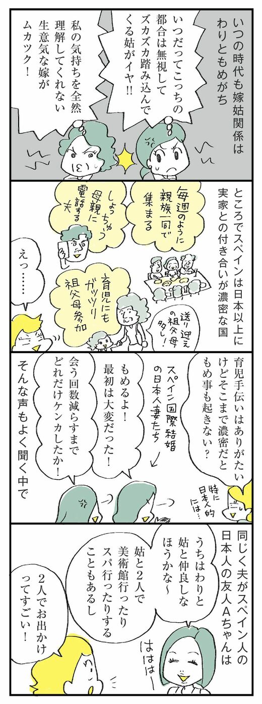 今回から数回に分けて、スペイン・バルセロナ在住のある国際結婚夫婦の家事育児事情について紹介します。テーマは「つかれない嫁姑関係」。今回は、嫁姑で育児方針が合わなかったらどうするか、についてです。